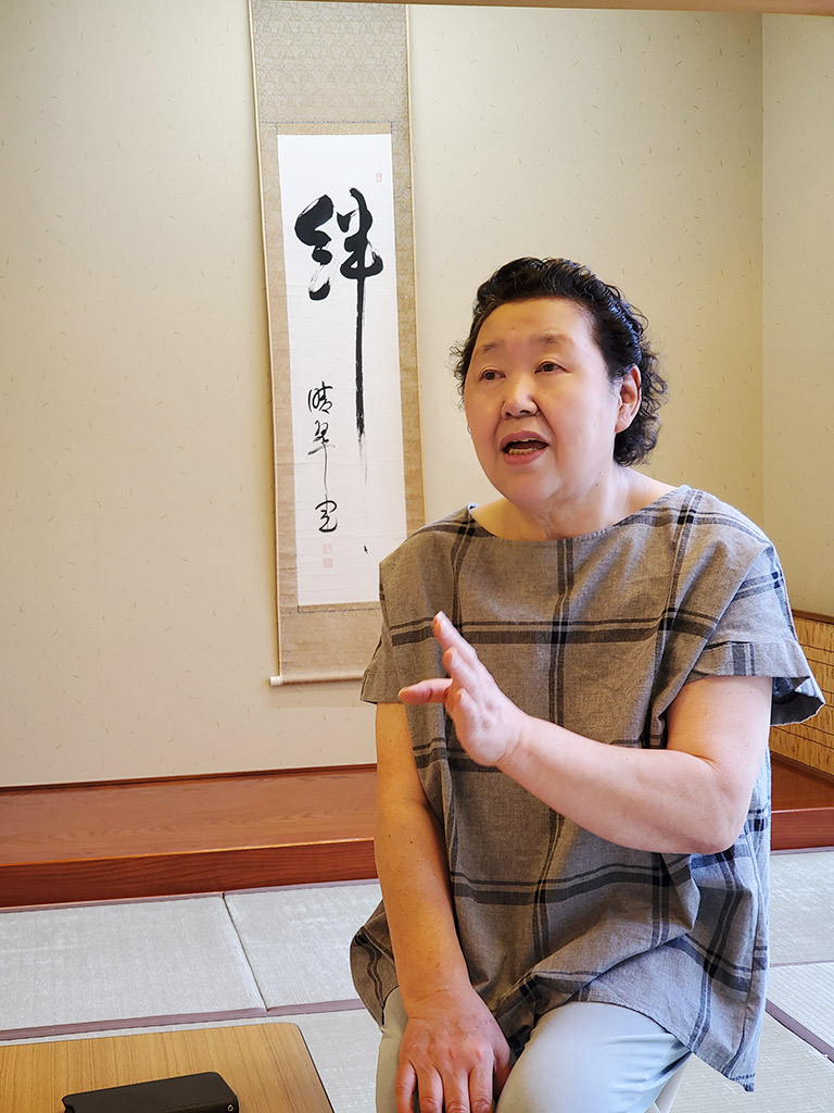 お茶やお花は学生時代から、お琴とかピアノもやってたんだけど、ピアノは3日でやめました(笑)。華道、煎茶道、抹茶道、着付けが残っている感じ。でも、これを商売にする気持ちはないんです。なぜかというと、実家の婆さんたちの着物とかを寝かせておくのはもったいないし、姑なんかは教員でしたけど、自分の退職金を全部お茶道具や着物に変えるくらい楽しんだ人なので、そういうのを利用して皆さんに楽しんでもらえればということ。子どもにも無料で教えていて、やりがいありますよ。