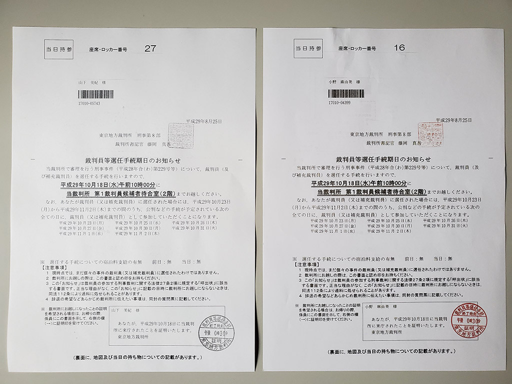 確かに、いきなり最高裁からの通知は誰でも驚くものだ。そして、職場の店長さんにとって身近なものだったことも驚きだ。やがて、小野さんと同じ2017年8月下旬に、山下さんにも呼出状が届いてしまった。