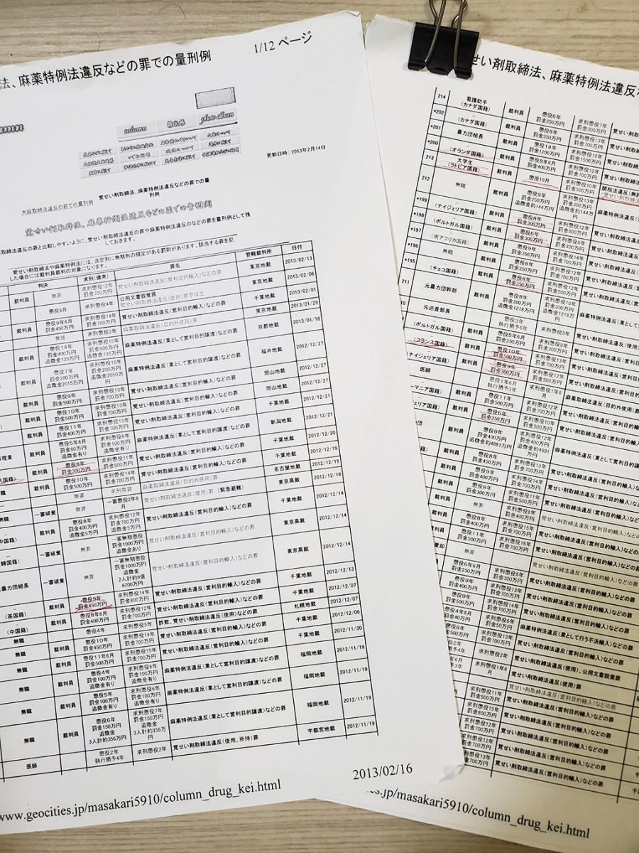 似たような事例で、この判決では懲役何年でしたって(量刑検索システム)。でも、自分でも(インターネットで)調べました。「千葉地裁でフランス国籍の被告人に懲役8年」とか。重いとか軽いとかもわからないですからね。実際(営利目的で)やっているのであれば、(懲役)10年くらいあってもいいと思うんですけど……。