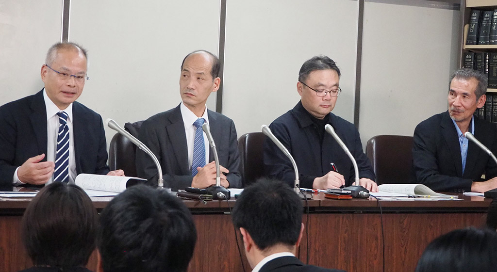 会見では、①について葛野教授、②について田淵教授、③について中川教授、④について水谷教授がそれぞれ意見書の内容を補足した。