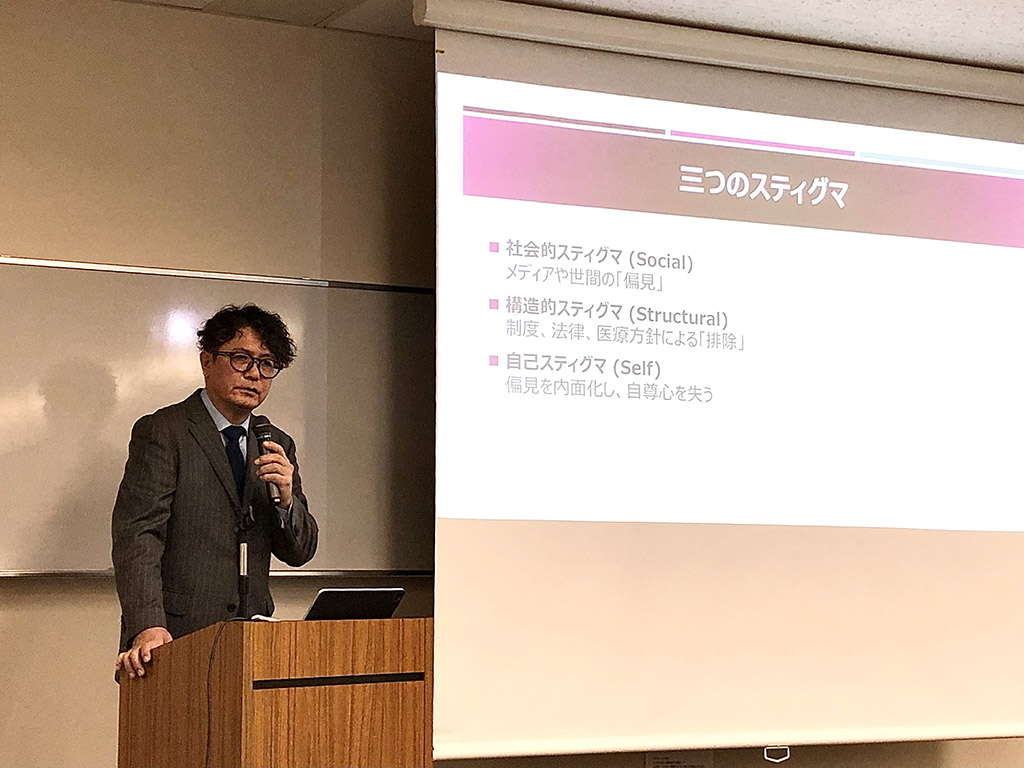 1日目の冒頭では、回復支援の会・木津川ダルクの加藤武士さんが、薬物使用者に対するスティグマについて解説した。スティグマとは「『不名誉』や『汚名』といった負のレッテルを貼ることで、特定の個人や集団を差別や偏見の対象とする現象」で、3つの種類(社会的スティグマ、構造的スティグマ、自己スティグマ)があるという。