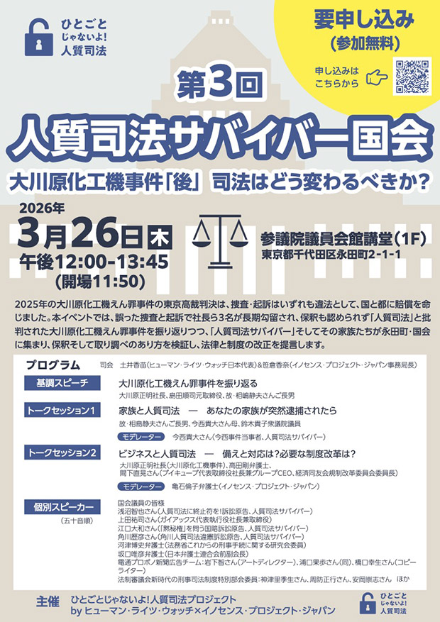 ◯テーマ:第3回人質司法サバイバー国会「大川原事件『後』司法はどう変わるべきか?」