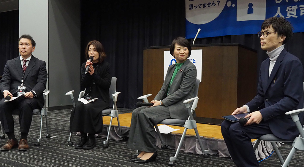 続いて、鈴木貴子衆議院議員(自民党)は、父・鈴木宗男衆議院議員が受託収賄罪などで逮捕(有罪判決が確定したが、再審請求中)された当時のことを「言葉には言い尽くせない」としながらも、「人質司法」に対する思いを熱く語った。