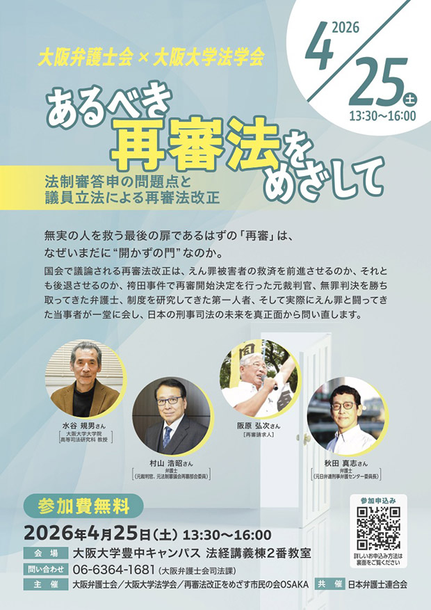 ◯主催:大阪弁護士会、大阪大学法学会、再審法改正をめざす市民の会OSAKA